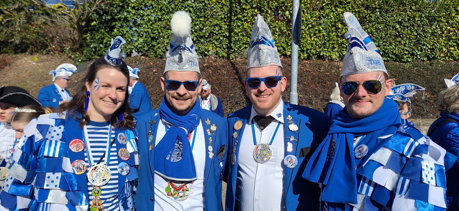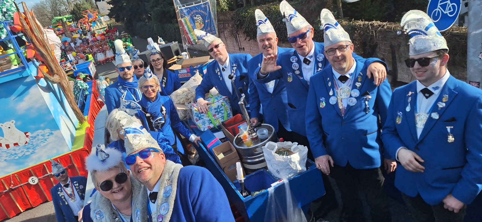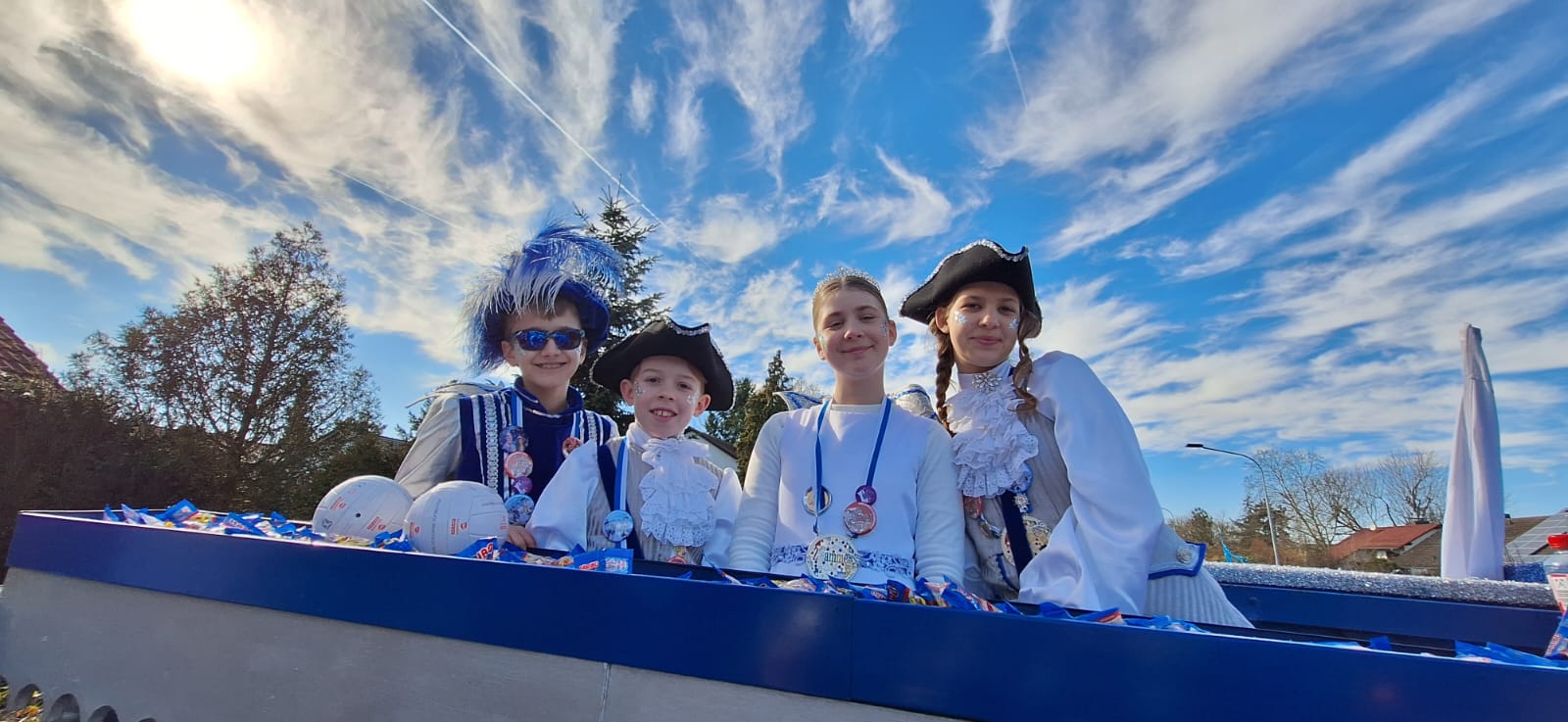 Zum närrischen Tross unseres Vereins gehören unsere Garden, der Damenrat und Elferrat, mit Nachwuchs von klein bis groß, das Männerballett, die Eltern des Kinderprinzenpaares sowie unsere Ratsherren. Jeder trägt zum Gesamtbild bei und sorgt dafür, dass unser Verein geschlossen, silber-blau und lebendig beim Umzug vertreten ist.